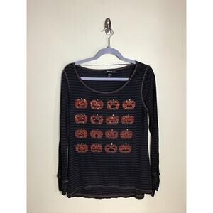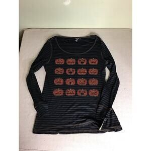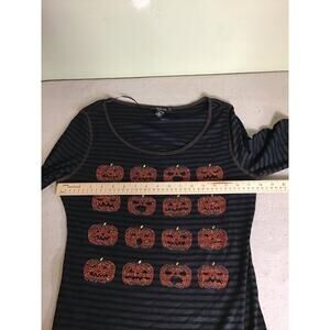 Style&Co. Women Ribbed Striped Jack-O-Lantern Halloween Shirt Sz.Med Black NWT