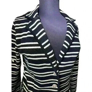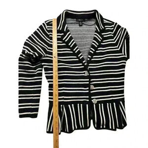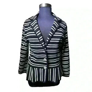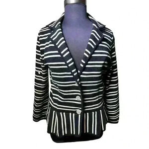 Style&Co Women's Striped Button Front Ruffle Hem Collared Blazer Jacket Size XL
