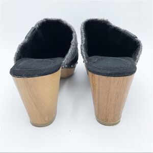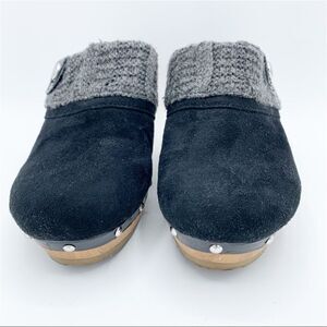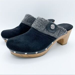 Style & Co Wooden Heeled Black Suede Clog with Knitted Trim and Silver Tag