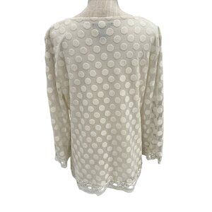 Style&Co. XL Polka Dot Lace Mesh Overlay Top With Crochet Cuffs & Hem in Cream