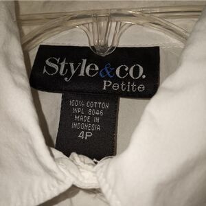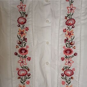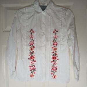 Style&Co 4P 100%Cotton White Embroidery Lngslvs Buttons Up Women's Shirt Blouse.