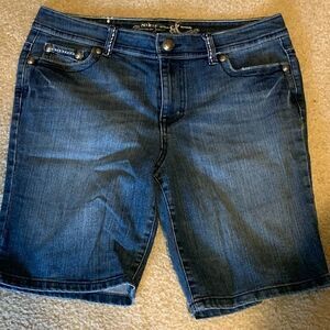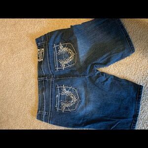Lovely beaded jean shorts with beaded belt loops in front and stunning pockets in back. Bermuda length. Will work with any summer top