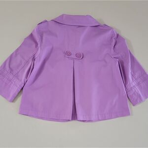 The Sydney jacket by Style & Co. from Macy's in beautiful freesia shade of purple is loaded with lots of detailing. The front gathers and back pleat give plenty room for ease along with spandex for stretch. The epauletts at the shoulders and on the back add a smart touch, too! In new condition.