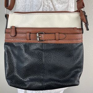 Stylish, grab and go bag by stylin featuring an adjustable handle. It measures 10 inches in width, 10 inches in height, and has a 12 inch drop on the handle.