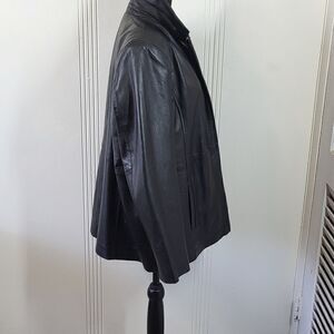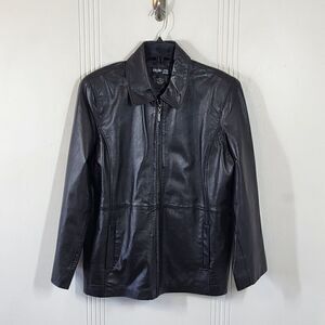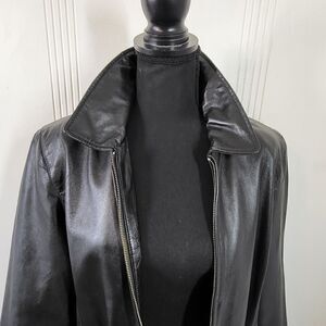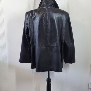 Style & Co. women's black leather jacket. Size large petite. Zips in the front with two pockets. No flaws.