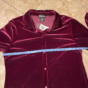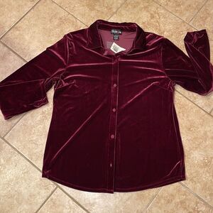 Polyester/spandex shirt and skirt set. Size L. NWT. Prefect for any upcoming Holiday event. Per tag, color is sangria.