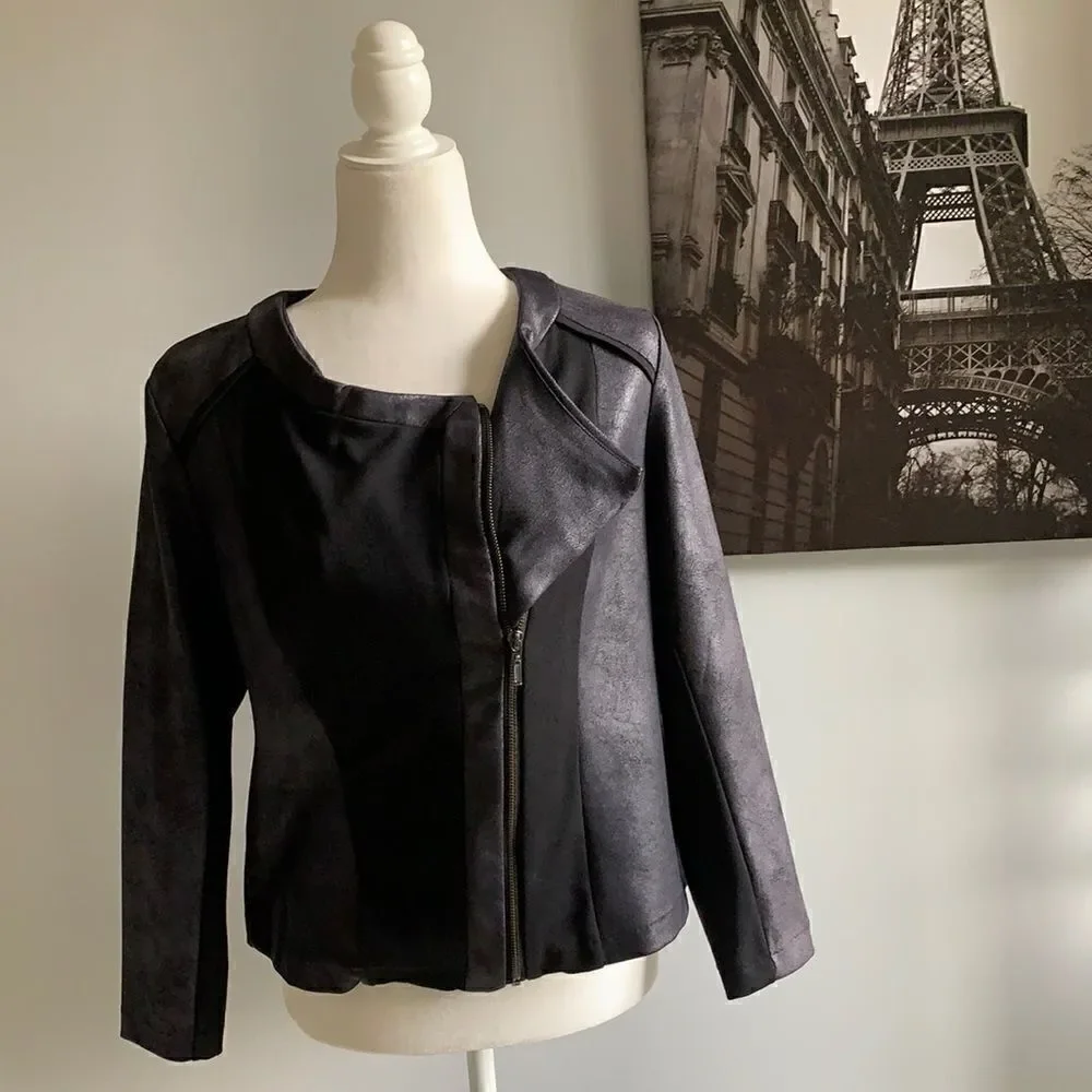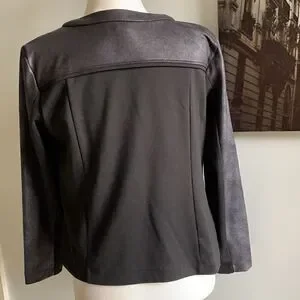 Adorable Style & Co zip front jacket in black/gunmetal. Wear zipper up or open for different looks. Can be worn with dress pants, jeans, or as a cute topper to a little black dress. Size PM. Worn once.