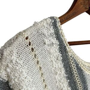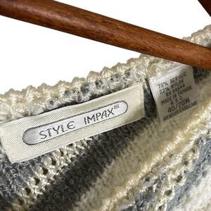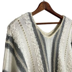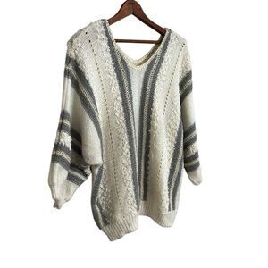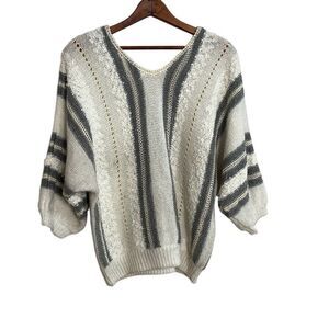 Style Impax Stripe V-Neck Balloon Sleeve Knit Pullover Sweater Gray Cream Size 40/20W