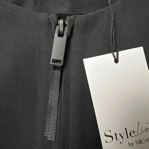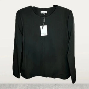 StyleList dressy black zip up collarless jacket, has a little stretch size SMALL