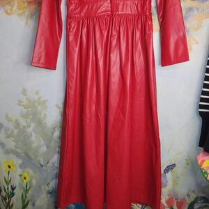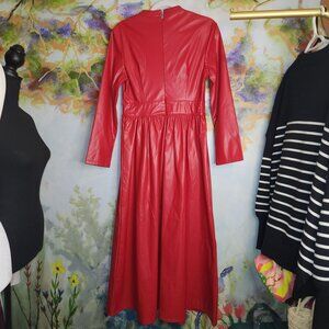 StyleWe Red Faux Leather Long Sleeve Midi Dress With Keyhole Neckline