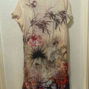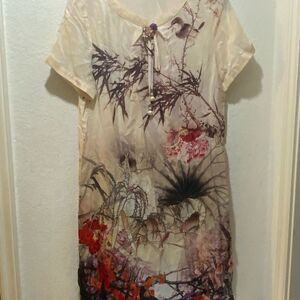 StyleWe Womens L Tropical Floral Silk Midi Hi Low Short Sleeve Tunic Dress
