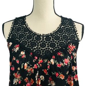 Stylebook Black & Orange Floral Lace Tank Top Light and flowy Stretchy Racerback Style Small 19" bust laying flat Medium 20" Length 28" 96% Rayon 4% Spandex