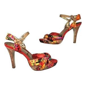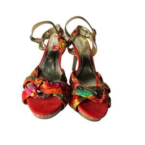 Style&co. Womens Owenn Platform Pumps Citrus Orange Multi Size 7.5 Tropical Tiki