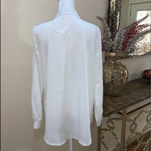 Very cute white blouse. No material tag, but feels like polyester. New without tag. No wears or damages.