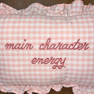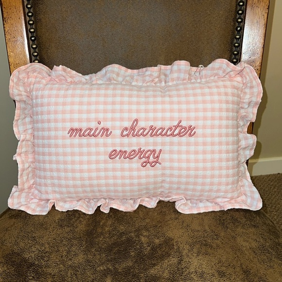 Stylehouse | “Main Character Energy” Gingham Embroidered Pillow
