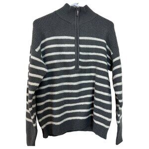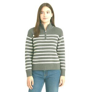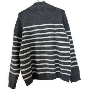 Styles & Co Size Medium Mock Neck Polyester Long Sleeves Stripe Sweater Grey