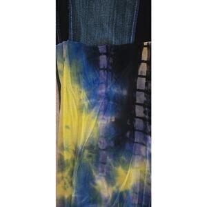 Blue, white, yellow tie dye colors.