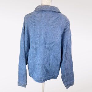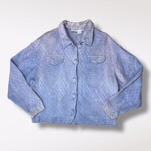Styles To Go Blue Textured Knit Button Front Sweater Jacket Cotton Size Large