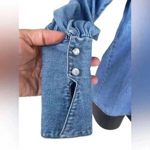 Styles togo women’s vintage denim cutout shoulders longsleeve top sz 4 preowned