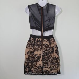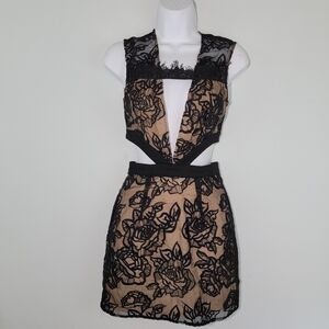 Stylestalker Night Fever Dress Women Sz XS Black Floral Lace Cut-Out Mini Length