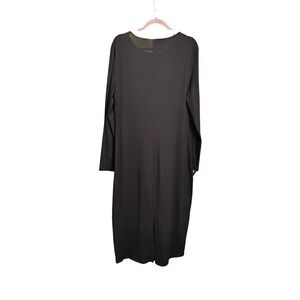 This is a sophisticated and comfortable black midi dress from the brand Stylewe, in a women's size 2XL. The dress features a flattering long-sleeve, crew-neck design and falls to a midi length, making it perfect for both professional and casual occasions. The fabric has a subtle ribbed texture, adding a touch of elegance. This is a versatile piece that can be styled with sneakers for a relaxed look or dressed up with heels for an evening out. The dress is NWOT with no signs of wear.