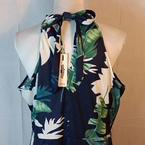 This New with tags blue green and white tropical print Styleword halter maxi dress is a size 2XL with a pit to pit measuring 23" and a length of 55". Ties behind neck. All offers are welcome.