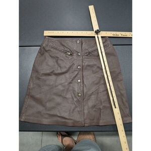 Styleworks Brown Grain Leather Lined Mini Skirt Button Up Front w Pockets Women'