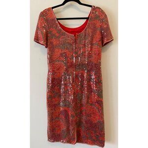 Styleworks Sequin Dress Size 12 Red & Orange Silk Cocktail Party