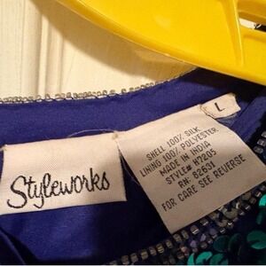 Styleworks Vtg 100% Silk Blue & Green Sequined Sparkly Top Size Large