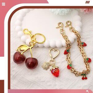 Features: This set includes 1 elegant bag charm and 2 adorable keychains featuring cherry charms and pearl accents. Made with durable metal and finished with a shiny gold-tone, these pieces add a playful yet sophisticated touch to your bags and keys. Securely attached with sturdy clasps, they’re easy to hook onto purses, backpacks, wallets, or keyrings.