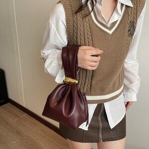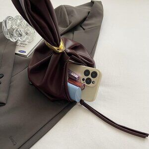 Features: Made of vegan leather, this trendy wristlet purse features elegant gold button decorations that add a touch of sophistication. Compact yet spacious enough to hold your phone, lipstick, keys, and small essentials. Comes with a wrist strap for versatile carrying options — use as a clutch, wristlet, evening bag, or even a mini tote.