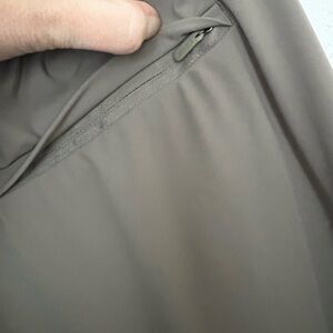 Chic tan pants with a comfortable fit. Ideal for versatile styling—- AKA SECRET PAJAMAS! Dressy pants but they are as soft and flexible as yoga pants. Quality garment- look equally great with heels, boots, or sneakers. Perfect for the office. Greige in color.