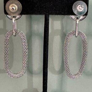 Stylish Adora Flexible Mesh Link Earrings- Silvertone Dangles Fluid Design