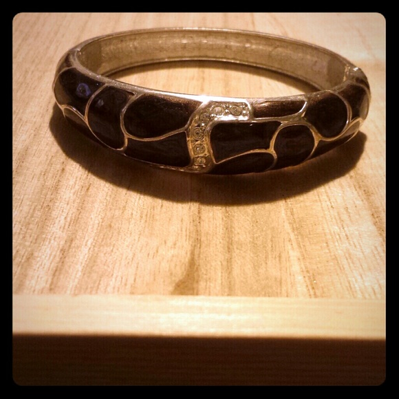 Roawwwwrrrrrr...get your animal on! Super cute silver tone animal print bracelet with crystal accents, hinged design.