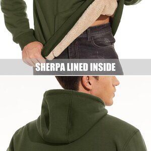 Features: Heavyweight hoodie with a thick sherpa fleece lining that keeps you extra warm. Made from high-quality cotton and spandex for a soft, comfy feel. The ribbed collar, cuffs, and waistband block out cold wind, and the fleece-lined hood adds an extra layer of coziness. Classic kangaroo pocket in front perfect for warming your hands or holding small essentials.