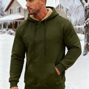 Stylish Army Green Men's Hoodie - Sherpa Fleece for Ultimate Winter Comfort