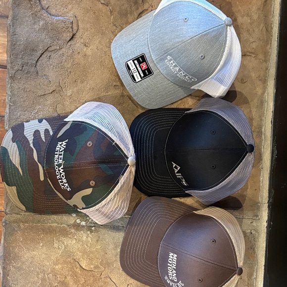 Set of four stylish baseball caps in various colors and designs. Perfect for casual wear.