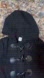 Classic black pea coat with stylish toggle closures. Hooded design for extra warmth.