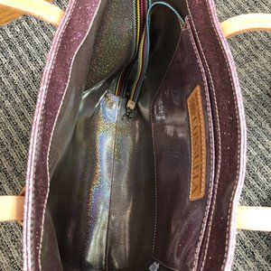 Elevate your style with this chic tote bag. Featuring a sophisticated beige and purple design, it's perfect for any occasion. The spacious interior ensures you can carry all your essentials with ease.