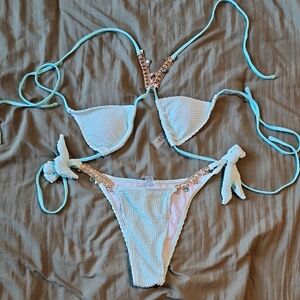 Chic bikini set with sparkling sequin accents. Perfect for beach days.