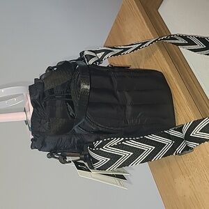 Stylish Black Crossbody Water Bottle Bag with Chevron Strap