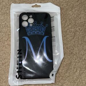 Stylish Black IPhone 12 Pro Max Case with Blue Monogram like new