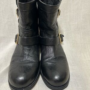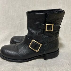 Step out in style with these chic black leather ankle boots. Perfect for any occasion, these boots offer both comfort and elegance.