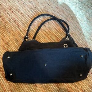 Chic black handbag featuring silver accents and hardware. Perfect for any occasion.