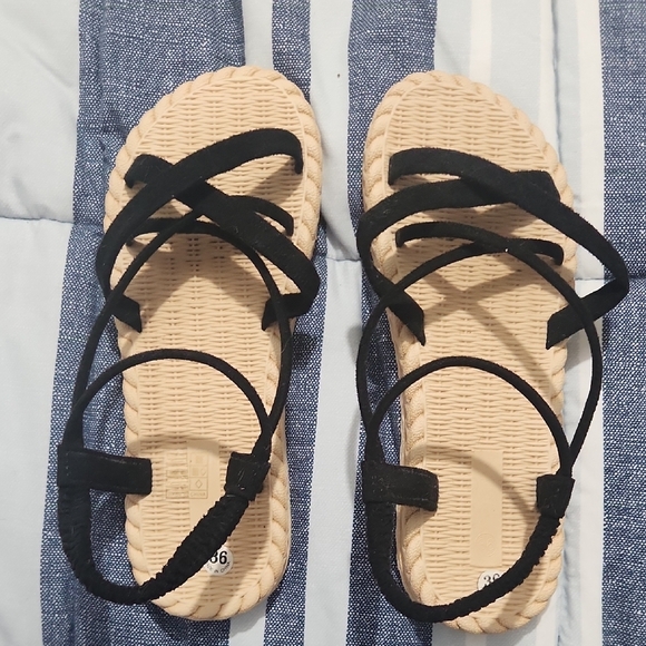 Elevate your summer style with these chic black strappy sandals. Perfect for any casual outing, these sandals offer both comfort and elegance.