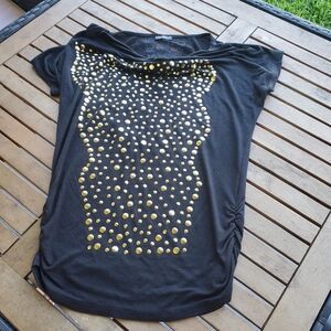 "Stylish Black T-Shirt with Gold Studs Detail For Woman M Size