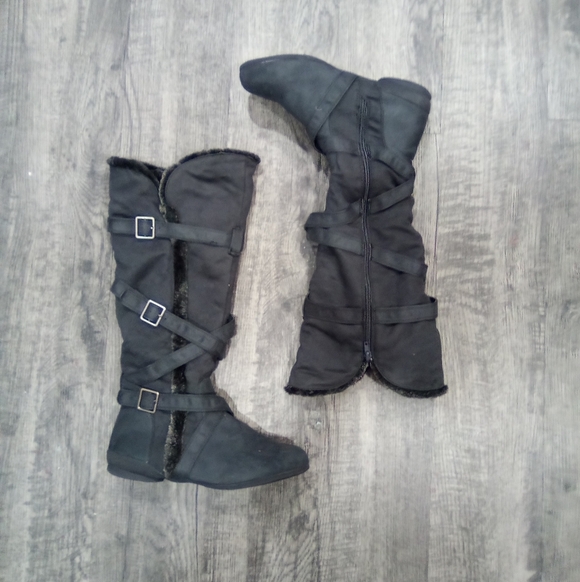 Stay warm and fashionable with these black winter boots. Featuring a sleek design and buckle accents, they are perfect for cold weather outings. not my size
