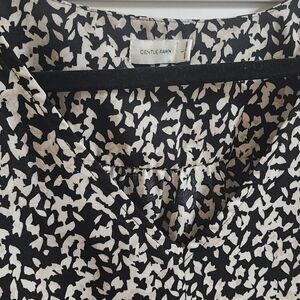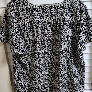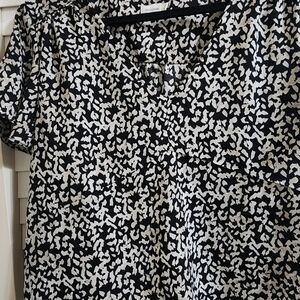 Elevate your wardrobe with this chic black and white top. Perfect for any occasion, this top offers both style and comfort.