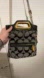 Chic and vintage crossbody bag with a black and gray pattern. Features a unique yellow accent on leather parts and handle.