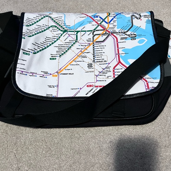 Stylish Black and Multicolor Boston Subway Map Print Messenger Bag, NWT